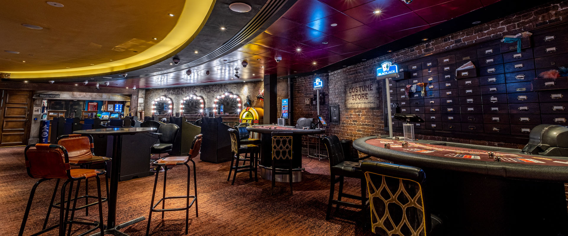 Lola的地下赌场位于剧场舞台和观众席正下方的地底。装修风格模仿了1900年代Hippodrome剧场全盛时期的样子。